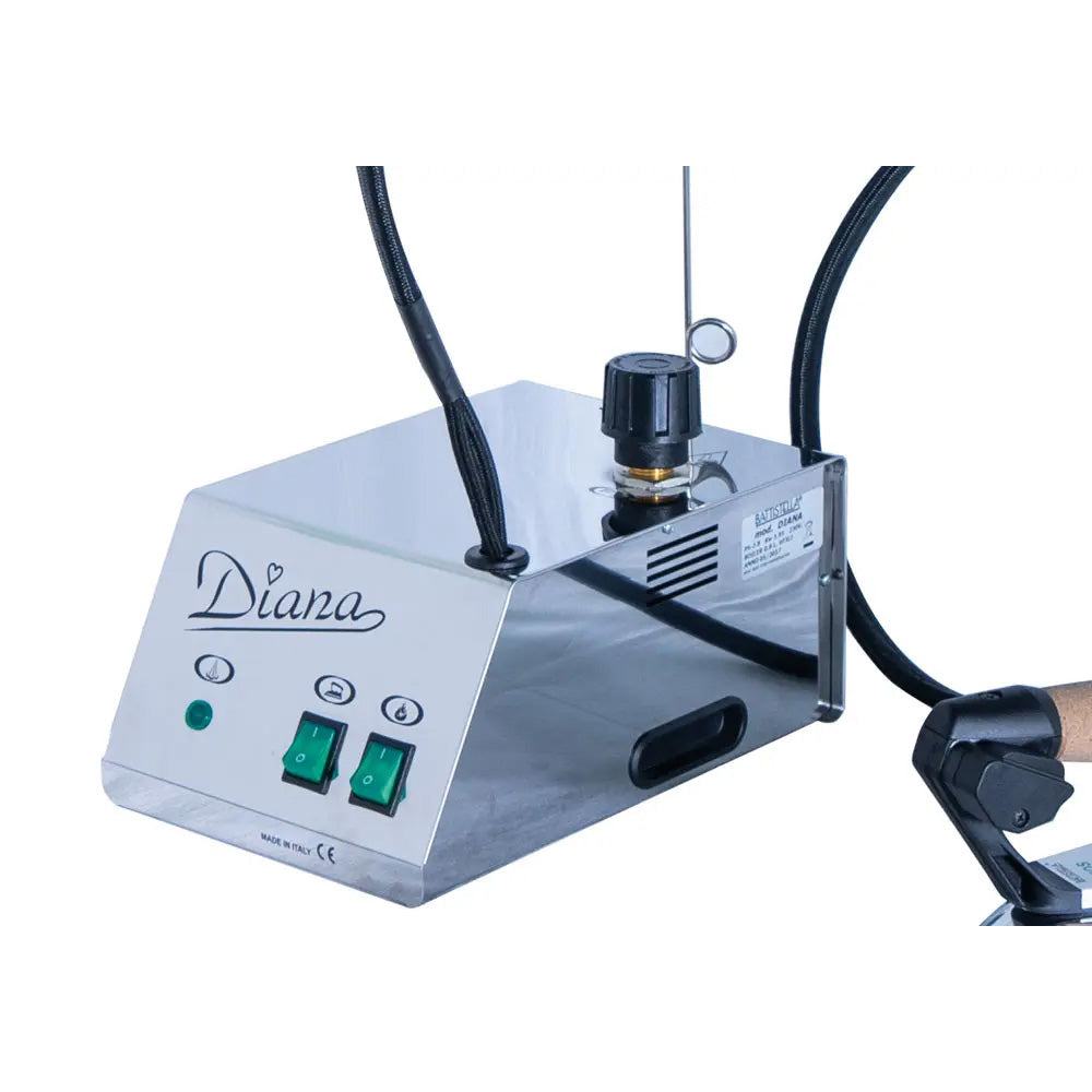 Battistella Generatore di vapore con carrozzeria in acciaio inox completo di ferro da stiro EOS, doppia valvola di sicurezza e termostato di sicurezza in caso di avaria. Caldaia acciaio inox da 0,8 lt. utili.