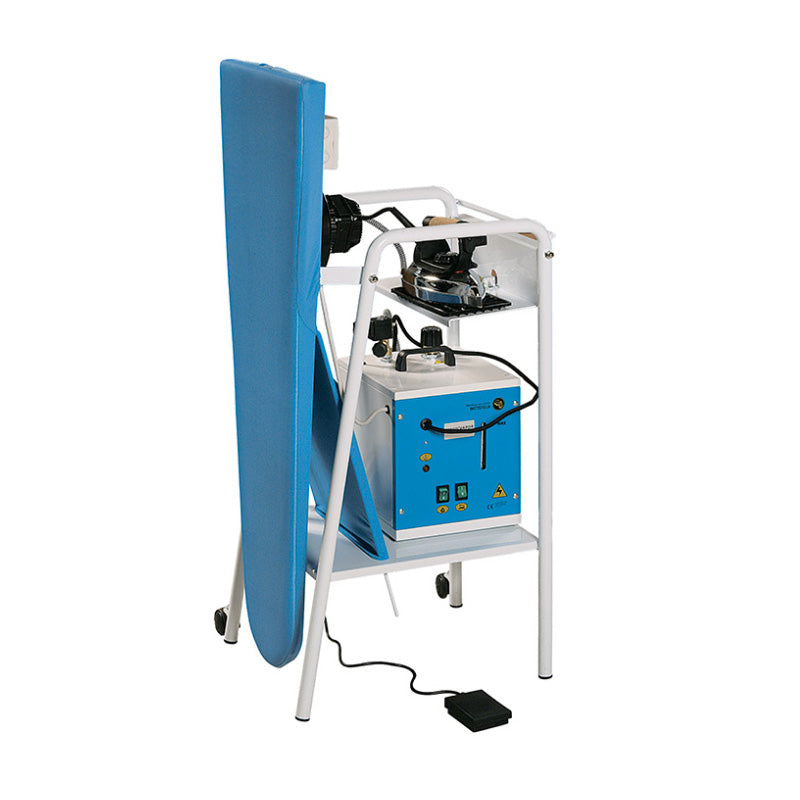Battistella Magicvapor Tavolo da stiro aspirante, riscaldato (cm 109x43) e pieghevole, con ferro da stiro EOS e caldaia da 3,4 lt. utili, valvola regolabile, doppia valvola di sicurezza, termostato di sicurezza in caso di avaria, livello acqua visivo, scarico dell'acqua e segnalatore di mancanza acqua.