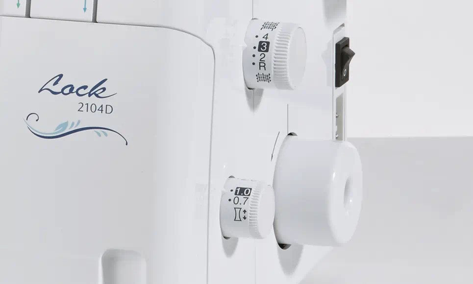 Con 2104D puoi finalmente dire addio all'infilatura noiosa e frustrante. Grazie a una serie di funzioni ergonomiche, l'infilatura su questa tagliacuci è un gioco da ragazzi. Inoltre, il sistema di trasporto con differenziale della tagliacuci 2104D offre cuciture perfette praticamente su qualsiasi tipo di tessuto, eliminando l'aspetto increspato o stirato dei punti sui tessuti.