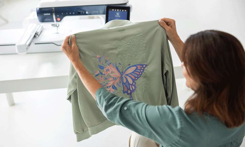 Espandi i tuoi orizzonti creativi con lo spazio lavoro (450 cm2) e il braccio lungo (358 mm) più grandi di sempre di Brother e il telaio per ricamo più grande di sempre (465 x 297 mm).