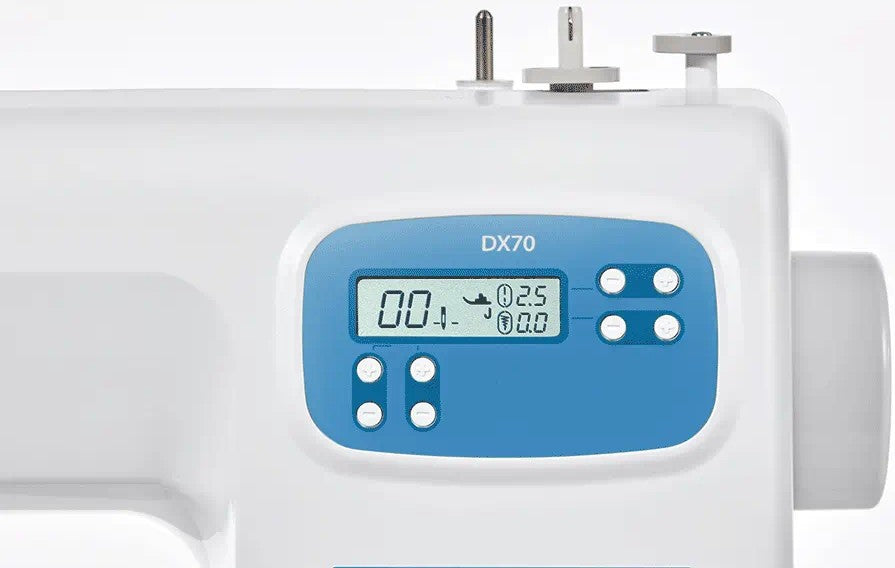 Inoltre, la DX70SE ha un corpo in metallo che la rende una macchina robusta e solida ma ancora abbastanza leggera e compatta da trasportare: la macchina perfetta da portare alle lezioni di cucito.