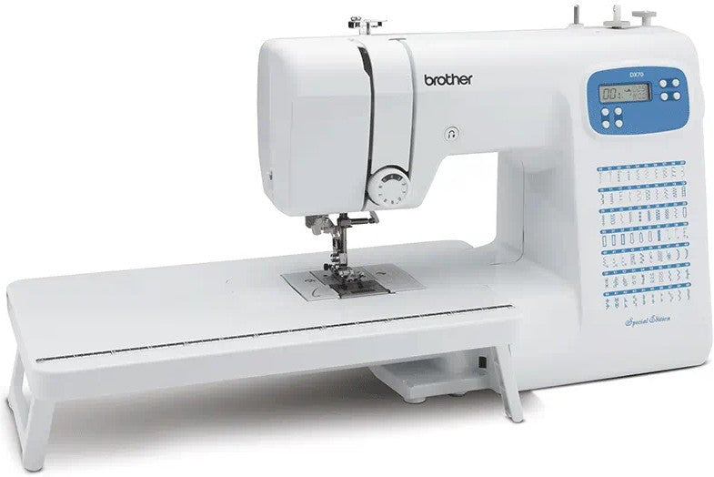 Compatta, ma dotata di un'ampia varietà di punti, Brother DX70SE è ricca di molte funzioni e accessori per farti cucire in pochissimo tempo!