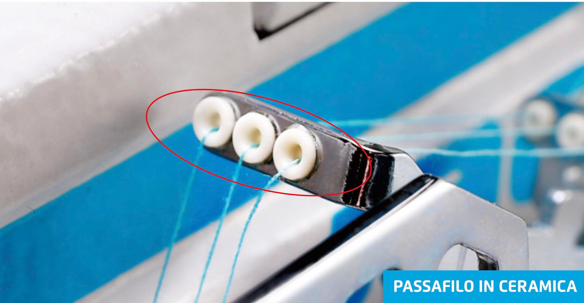 Il nuovo sistema di infilatura rende il filo inferiore più scorrevole nei passaggi, inoltre la polvere del filo non entra nel rasafilo rendendolo più stabile e di maggior durata e resistenza nel tempo.