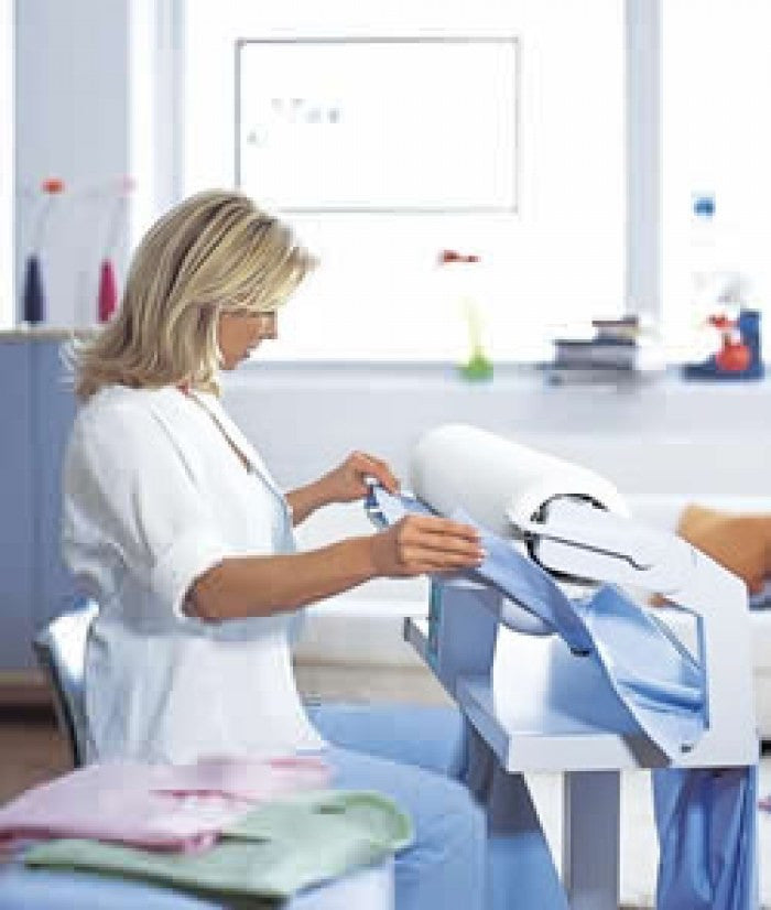 "Stirare non è mai stato così comodo e veloce stando comodamente seduta!". Adatto per biancheria di grandi dimensioni, ma fantastico anche sulla biancheria più piccola! Sofisticato dal punto di vista tecnico ma molto semplice da usare! Con il vapore a 3 livelli di intensità sia per una vaporizzazione permanente che per una vaporizzazione attivata tramite pedale.