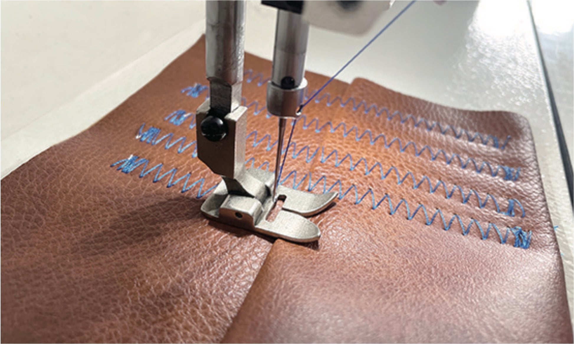 Cuciture zigzag di varie ampiezze e punto diritto adatte a lavorazioni su pelle, scarpe, cappelli, borse, tessuti pesanti e altri materiali simili.