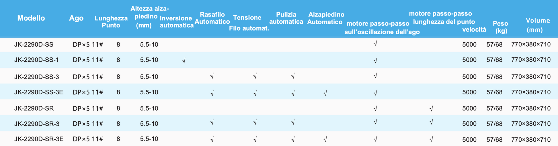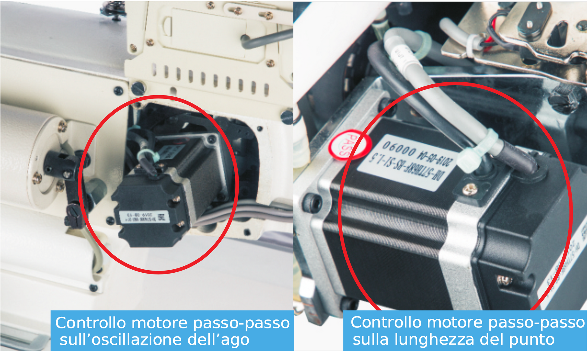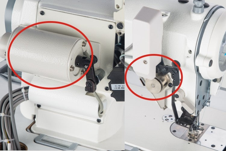 Rasafilo automatico, alzapiedino automatico. Rilascio della tensione del filo e funzioni di pulizia opzionali; l’efficienza di cucitura aumenta del 35%.