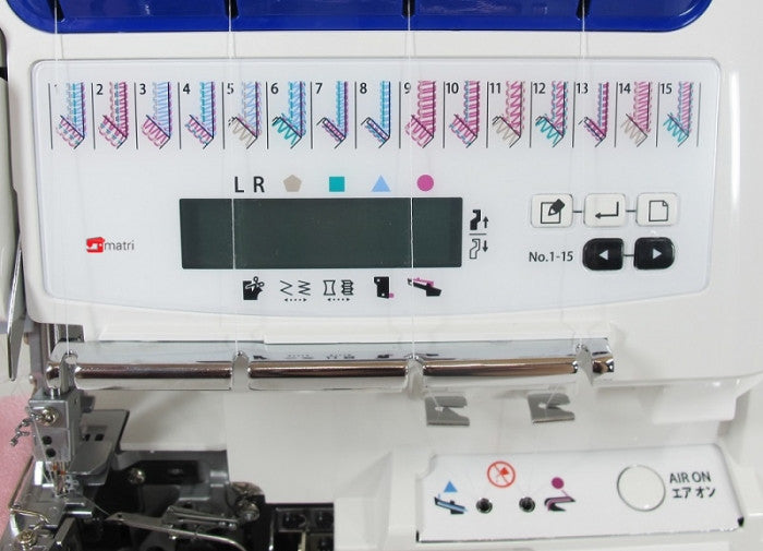 Macchina tagliacuci a 1/2 aghi - 2/3/4 fili, con infilatura elettro-pneumatica del crochet superiore ed inferiore, dotata di differenziale e allunga punto. La placca ago con doppio indice ti permetterà di eseguire perfetti orlini, inoltre l'infilatura automatica degli aghi faciliterà ancor di più il cambio filo. L'utile display LCD parlante ti consentirà una facile regolazione delle tensioni per tutte e 15 i tipi di cuciture e con la possibilità di cucire fino a 1500 punti al minuti, ogni progetto risulterà di veloce realizzazione. Dispone inoltre di ottima luce a LED che illumina l'intera area di lavoro e dell'utile contenitore per i ritagli.