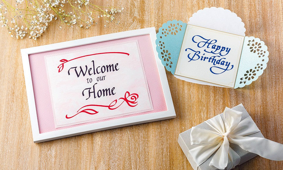 Lo Starter Kit Calligrafia consente di realizzare scritte con calligrafia elegante utilizzando la gamma ScanNCut DX.