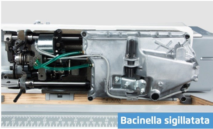 La bacinella dell’olio è sigillata, evita l'ingresso di polvere, mantenendo la macchina pulita e resistente, garantendo una perfetta lubrificazione.