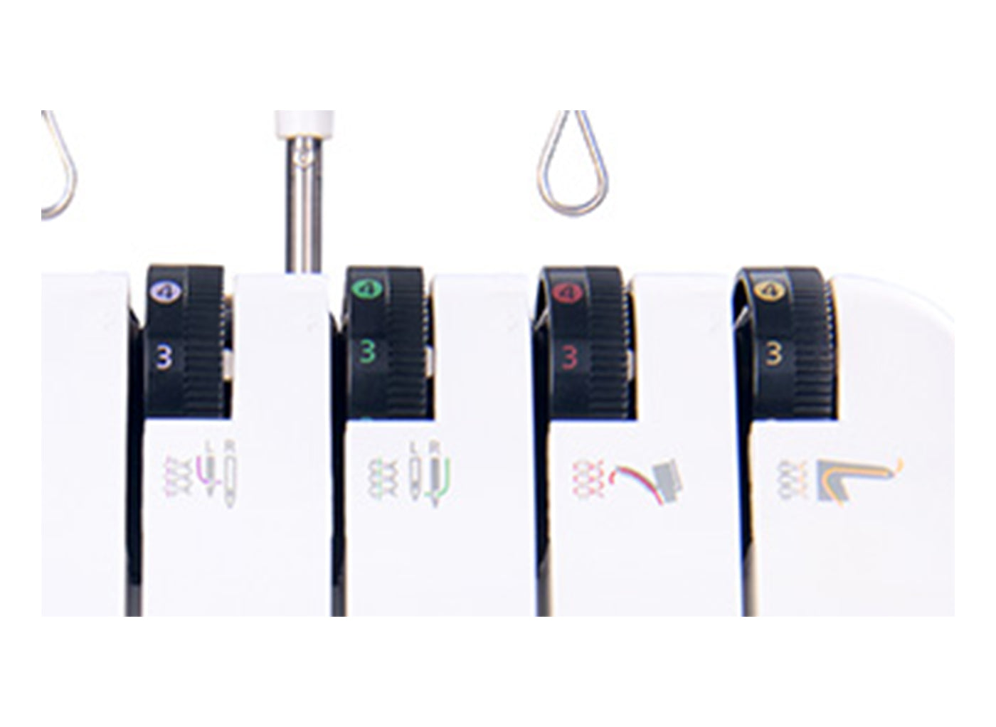Possibilità di cucire a 2, 3 e 4 fili con 12 combinazioni punto disponibili