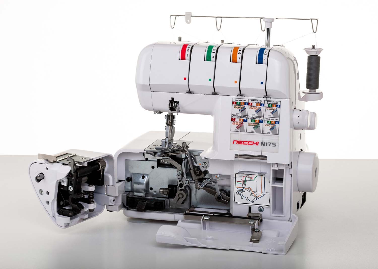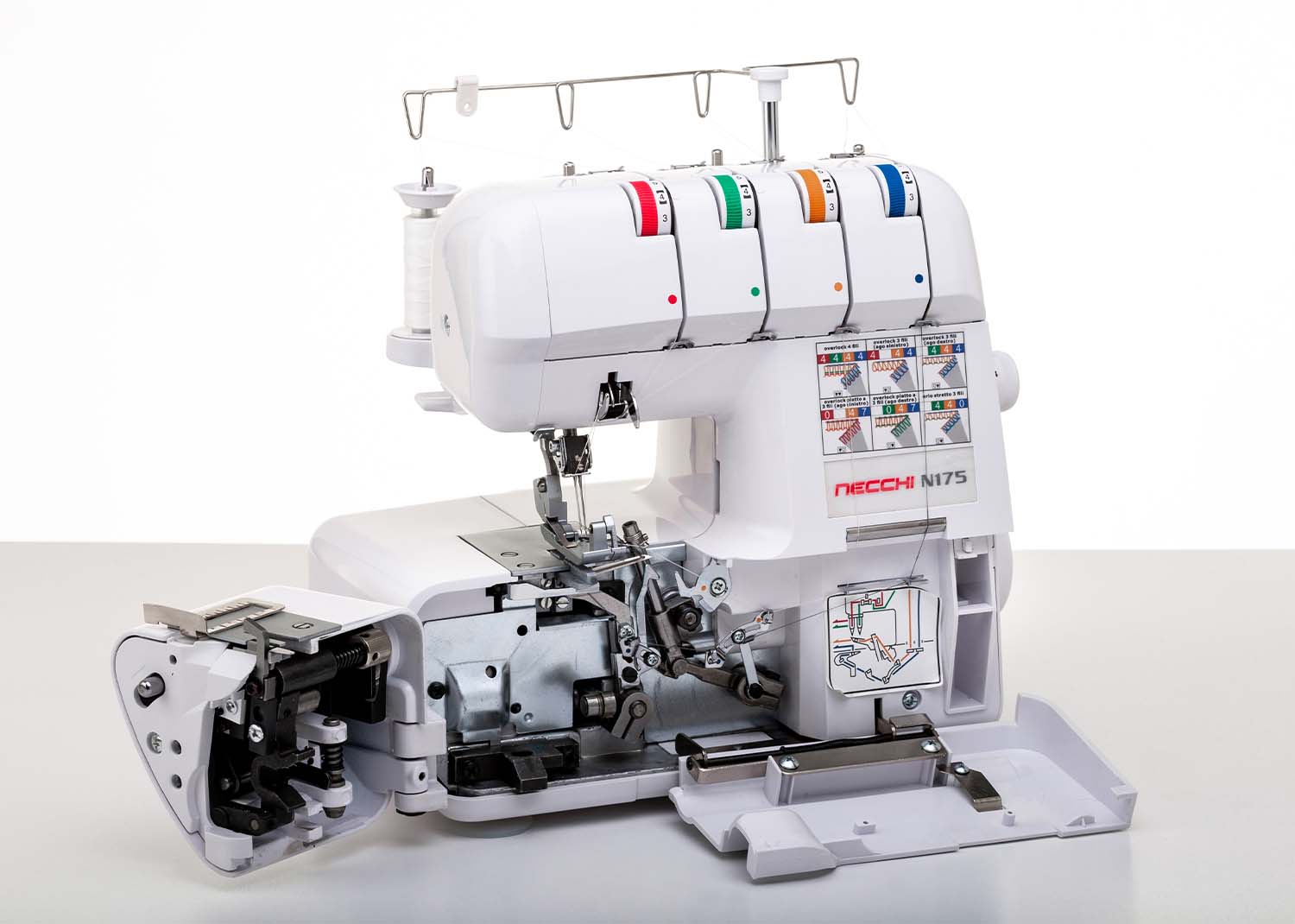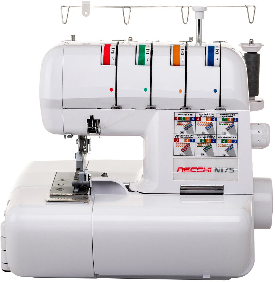 Il modello Necchi N175 è una Tagliacuci a 3/4 fili. Esegue sorfilature a 2 aghi, orlo piatto stretto, orlo piatto largo, orlo arrotolato, orlo a punto picot e punto flatlock. Può arricciare o creare onde grazie alla regolazione del differenziale e si può aprire completamente per un’infilatura rapida e semplice. *** Adatta anche ai principianti!