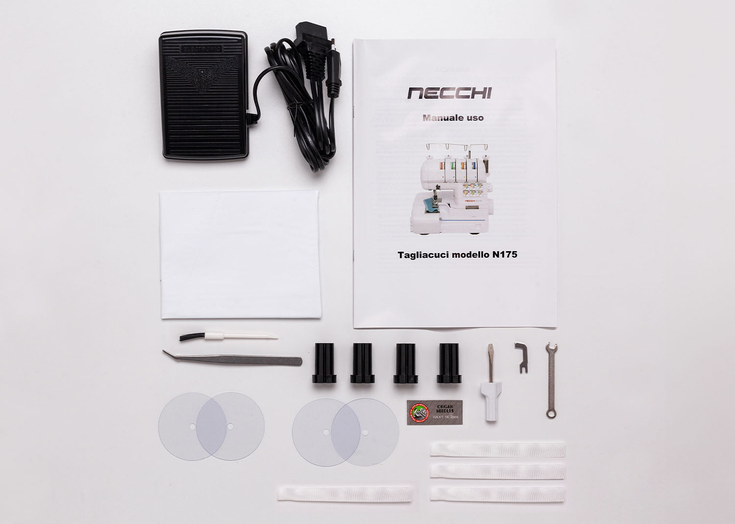 Necchi N175 è la perfetta alleata della vostra macchina per cucire: taglia, rifila, esegue orli arrotolati e rifiniture degne di un’abile professionista. I vostri progetti acquistano nuove linee e proporzioni; tessuti elasticizzati e sottili non vi sembreranno più impossibili da cucire. Compatta e robusta è in grado di realizzare punti esclusivi grazie ai numerosi programmi a disposizione e l’apertura del coperchio laterale semplifica l’operazione di infilatura. Controllo e precisione anche ad alta velocità. La vostra fantasia ha incontrato un’alleata affidabile e versatile. Rifiniture con 3 o 4 fili e regolazioni adatte ad ogni tipo di tessuto: dallo chiffon alla spugna, dal jersey al tweed, nessun confine con Necchi tagliacuci N175.