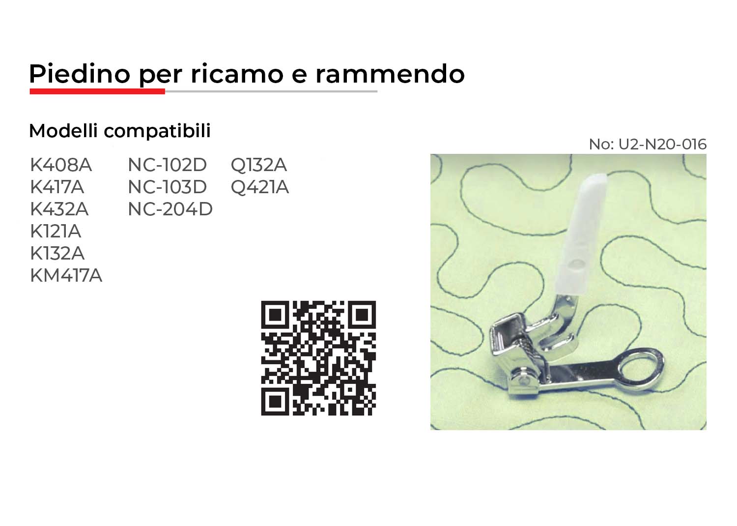 Il piedino per ricamo e rammendo è un accessorio utilizzato nelle macchine per cucire per facilitare il ricamo e il rammendo di tessuti. Questo piedino è progettato per essere più versatile rispetto al piedino standard, consentendo di eseguire lavori di ricamo decorativo e di riparazione dei tessuti danneggiati.