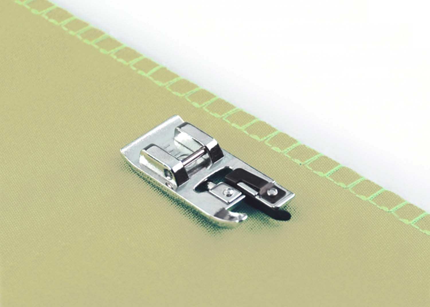 I bordi del tessuto si arrotolano? La soluzione classica è una finitura a punto zig-zag. Questo piedino, per macchine oscillanti, facilita la regolazione della tensione del filo, in modo che la cucitura resti piatta. Utilizzatelo su tessuti di medio peso.