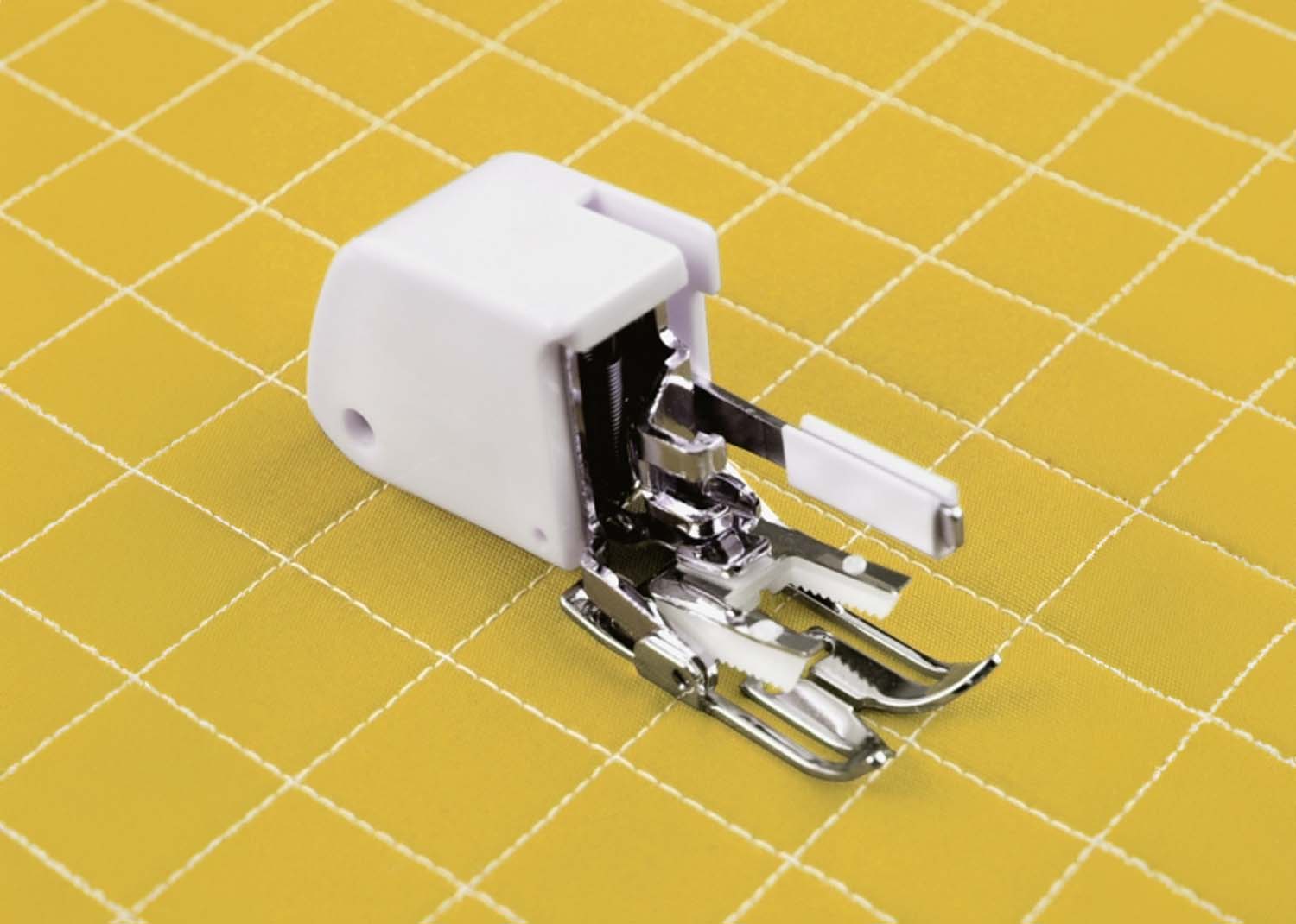 Il piedino trasporto superiore è uno strumento molto utile per gestire meglio tessuti particolarmente difficili o delicati. Serve a facilitare l’avanzamento uniforme del tessuto, garantendo una cucitura regolare senza che i materiali si arriccino o si spostino durante la lavorazione.