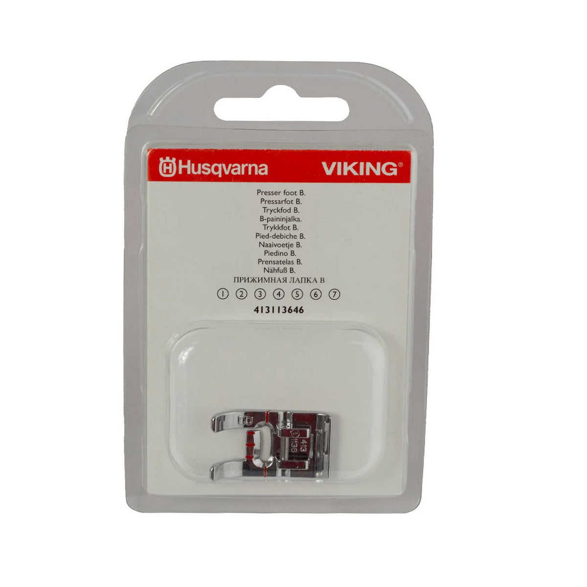 Piedino premistoffa lettera “B” 413113646 per macchina per cucire Husqvarna Viking Prisma,Optima,Classica,Prelude, Daisy,Scandinavia,Eden Rose,Tribute, Emerald,Platinum,Rose,Iris,Lily, Interlude,Freesia,Jade,Diamond Royale,deLuxe,Ruby