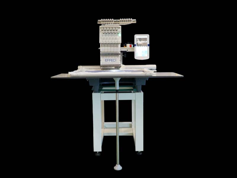 Macchina ricamatrice a 1 sola testa e 15 Aghi. Adatta alla elaborazione di capellini e ricamo di capi finiti. Rasafilo e cambio del colore automatici. Lunghezza telaio per capellini 270mm.