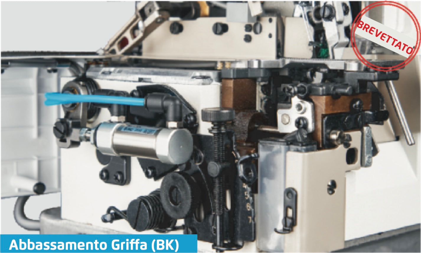 Tramite una leva è possibile cambiare l'inclinazione della griffa a seconda del tipo di tessuto leggero, medio o pesante, questo permette di andare incontro alle varie esigenze di lavoro. (BREVETTATO)