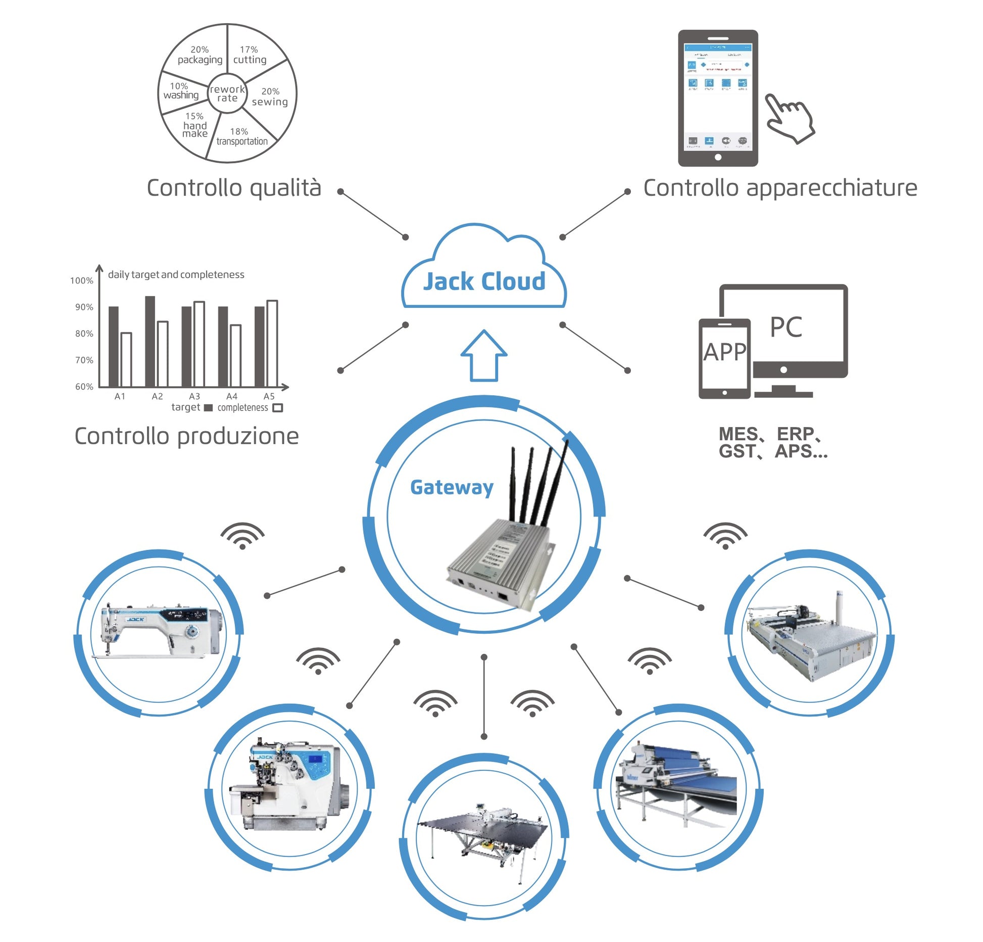 Grazie al modulo WIFI integrato puoi modificare i parametri e controllare la produttività della macchina direttamente dall'applicazione. NB: è necessario acquistare un gateway Jack ogni 50 macchine