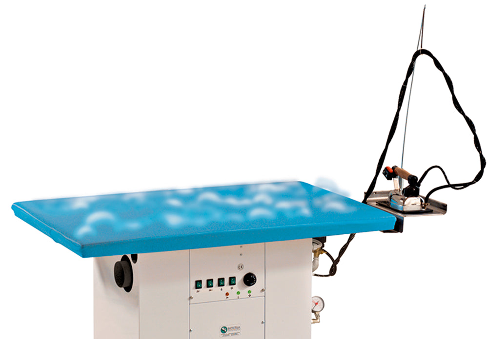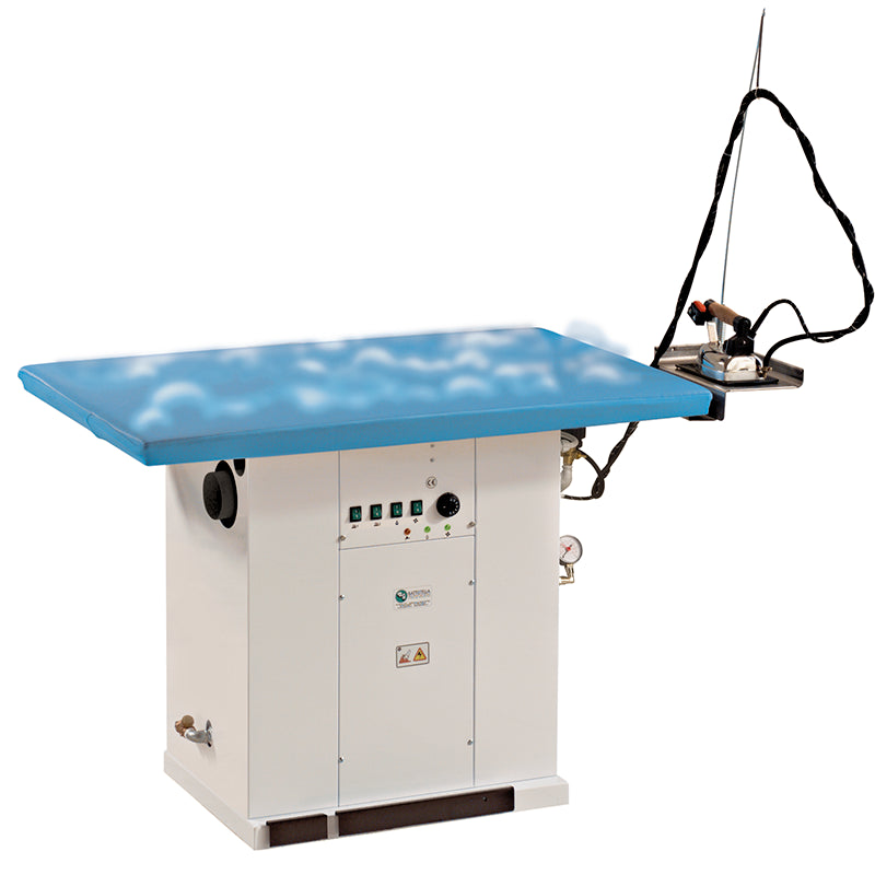 Tavolo da stiro rettangolare, aspirante, riscaldato e vaporizzante con ferro e caldaia